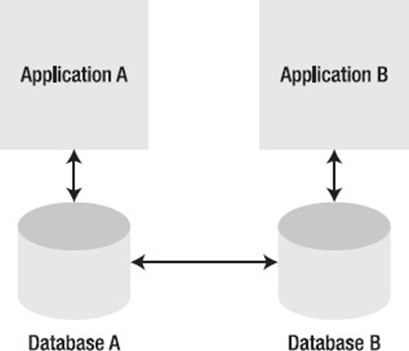 When multiple business processes in an organisation need to access the same data, data synchronization—the most frequently requested sort of integration—is utilised. Since this is typically a temporary solution when a façade pattern may be employed in its place, it is almost like an anti-pattern. A customer's address, for instance, might be utilised in a system for managing customer relations, billing the customer, or shipping a product to them. Each system typically has its own data store for client information for a number of factors, such as performance and particular domain models. Each system must update its perception of the client information whenever, for instance, the customer changes his address. Implementing a data synchronisation integration pattern could help achieve this (see Figure 1–10).