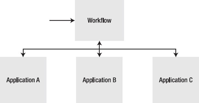 A variety of workflow engines, including those that use BPEL and BPMN to express process flows, are available. Without worrying about the actual implementation, the process flow can be planned at a high level. Later, the procedure can be put into practise by utilising an integration framework to integrate the workflow process with various applications (see Figure 1–12).