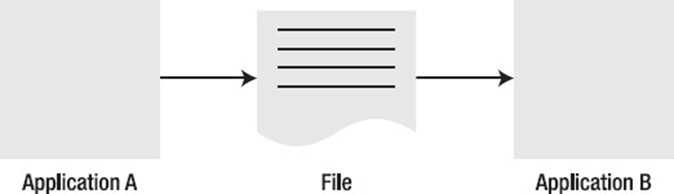 Typically, using a file is the first method that springs to mind when transferring data (see Figure 1–2). When sharing data between two separate programmes, one system can create a file containing the relevant information. The other system can mount or poll for this file in an established, well-known directory. This directory may naturally be located anywhere, including an FTPS share, a SAN-based file system mount, an SFTP directory, or a clustered file system like Hadoop's HDFS or VMware's VMFS. The other system can process the file for the data once it is accessible. When using file transfer, there needs to be agreement on the file type to use and the frequency of publishing and consuming the files. The management of all the formats and files, as well as making sure that no files are missed, is a significant problem with this method. Additionally, there is always a gap in time between the frequency of file production and consumption. This might interfere with synchronisation. Because neither the producer nor the consumer must be present for the integration to take place, file transfer integrations are temporally decoupled. The systems in file transfer integration are also logically separated because they just need to be aware of the shared mount and not one another.