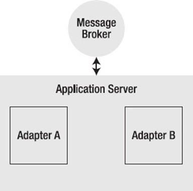 Since its inception, which was intended to deal with data and business process sharing across the company, EAI designs have gone through several stages of evolution. Older integration methods included platform-neutral RPC like CORBA and Oracle's (formerly BEA's) Tuxedo. EAI switched to message brokers to address the previously mentioned problems with tight coupling and real-time access to data operations. An adaptor was used to establish a connection with the various applications in order to translate the application protocol into a format that the message broker could understand. For the purpose of providing basic application support, such as configuration and lifecycle management, the adapter software was typically run inside of some form of container (see Figure 1–7).