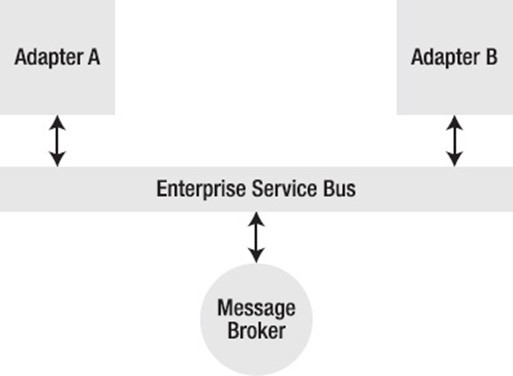 It appears messaging technology has returned after a brief reversal to remote procedure calls with service-oriented architecture (SOA). The architectures of today require asynchronous, loosely linked, stateless, and horizontally scalable service layers, which messaging is best suited for, as well as standard data interchange techniques (for which XML is excellent). The enterprise service bus was created as a result of the movement toward open, standards-based integrations (ESB). This is a compact adapter container with open-standards-based message routing capabilities (see Figure 1–9).