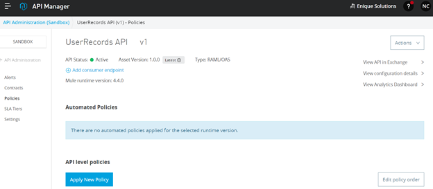2. Select Policies on the left, and click on “Apply New Policy” button.