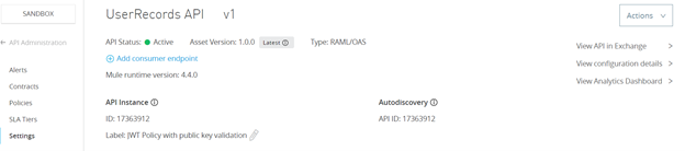 5. Go to Settings in the left pane and add a label to your API “JWT policy with public key validation”